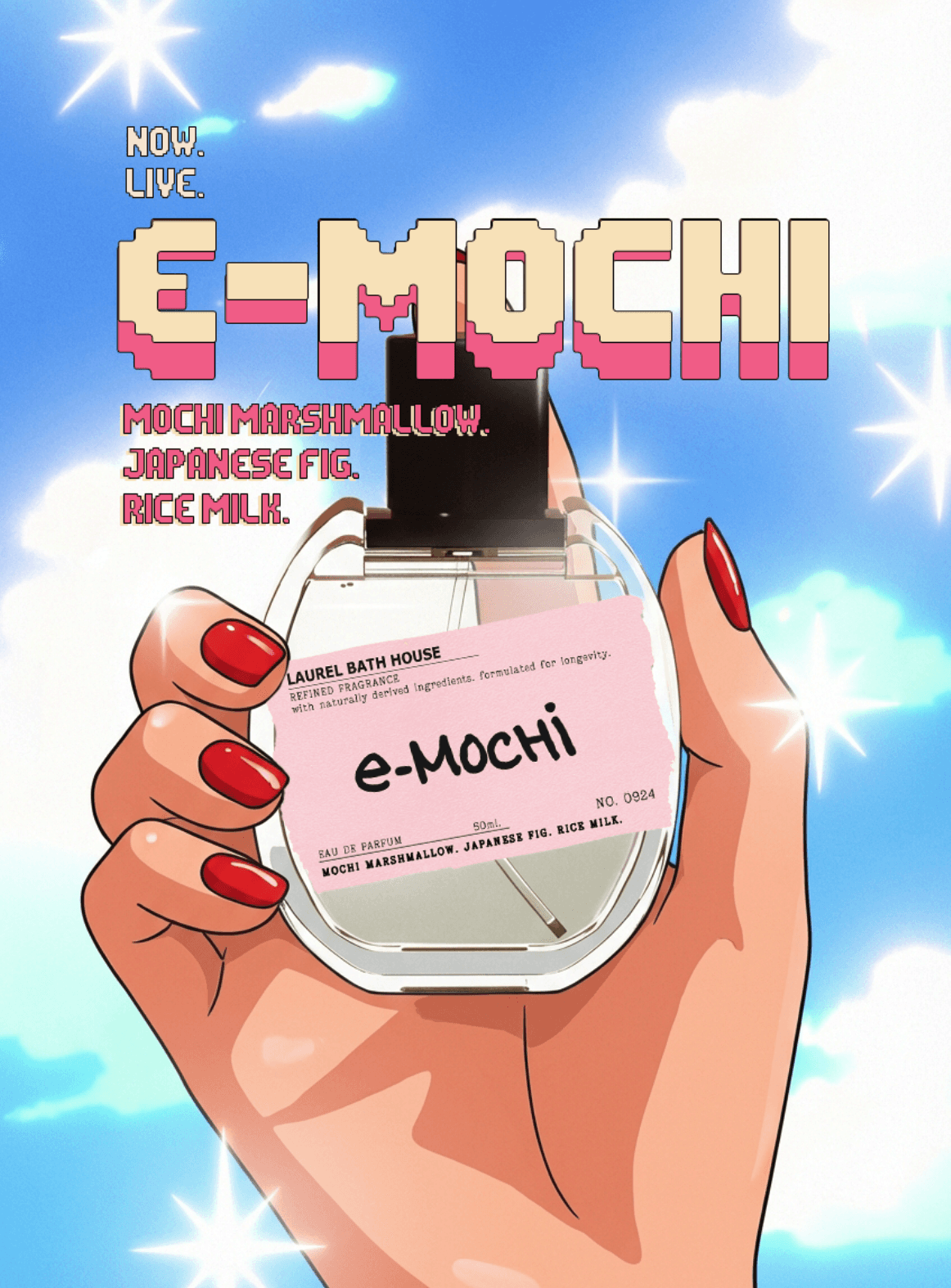 Pillowy mochi marshmallow—soft, cozy, almost glowing— pulls you in deeper with a luxurious Japanese fig — ripe and golden like a secret level you only find if you keep going.